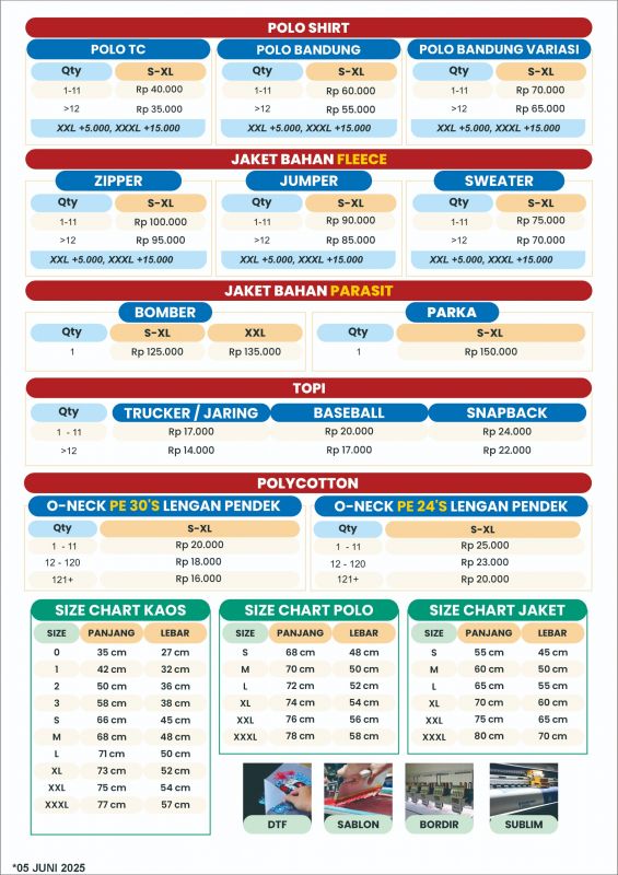 • Media promosi seperti Kemeja, Polo, Kaos menggunakan sablon dan bordir